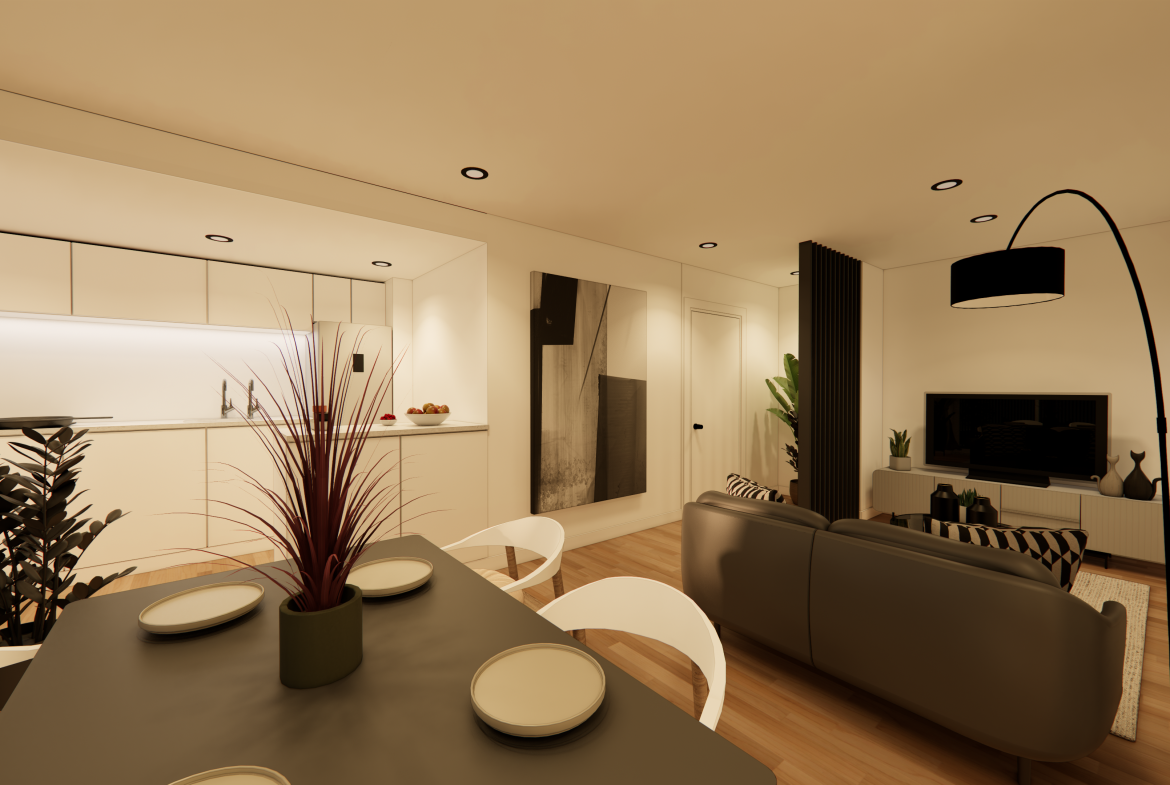 Documentación orientativa, tanto en su parte gráfica como los datos referidos a superficies, sin perjuicio de la información más exacta contenida en la documentación técnica del proyecto. No vinculante ni contractual, pudiendo sufrir modificaciones por requerimientos comerciales, jurídicos, técnicos o de ejecución del proyecto. Todo el mobiliario mostrado, incluido el de cocina, es únicamente orientativo y con efectos decorativos. Las imágenes 3D mostradas no tienen valor contractual.