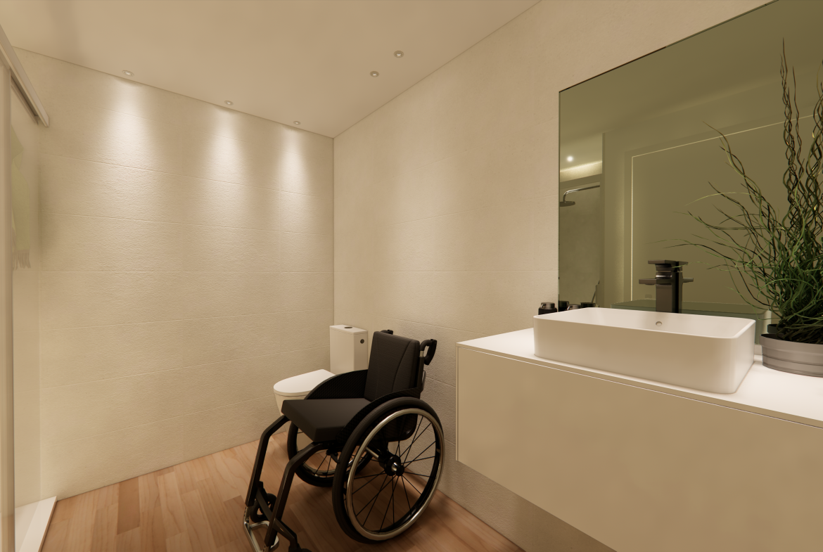 La vivienda dispone de baño y dormitorio adaptado a personas usuarias de sillas de ruedas.